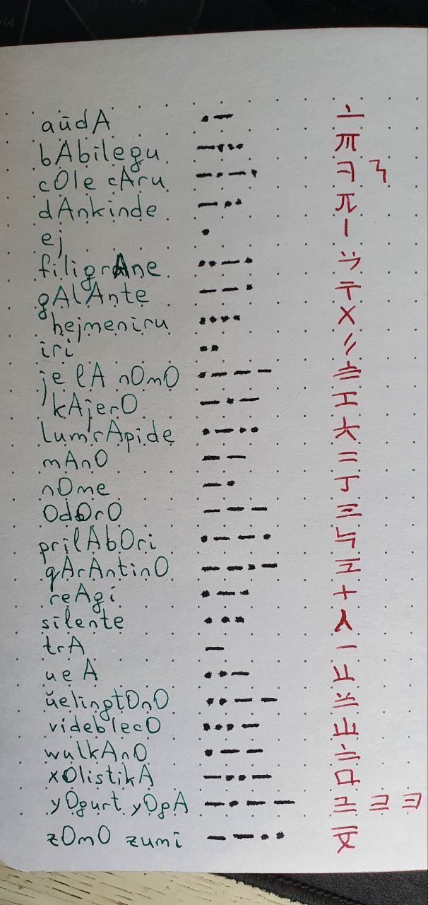 попытка создать мнемонику для запоминания кода - по аналогии с руско-язычной (айдА, бАкитекут, ..., ямАлямАл) - но на эсперанто.