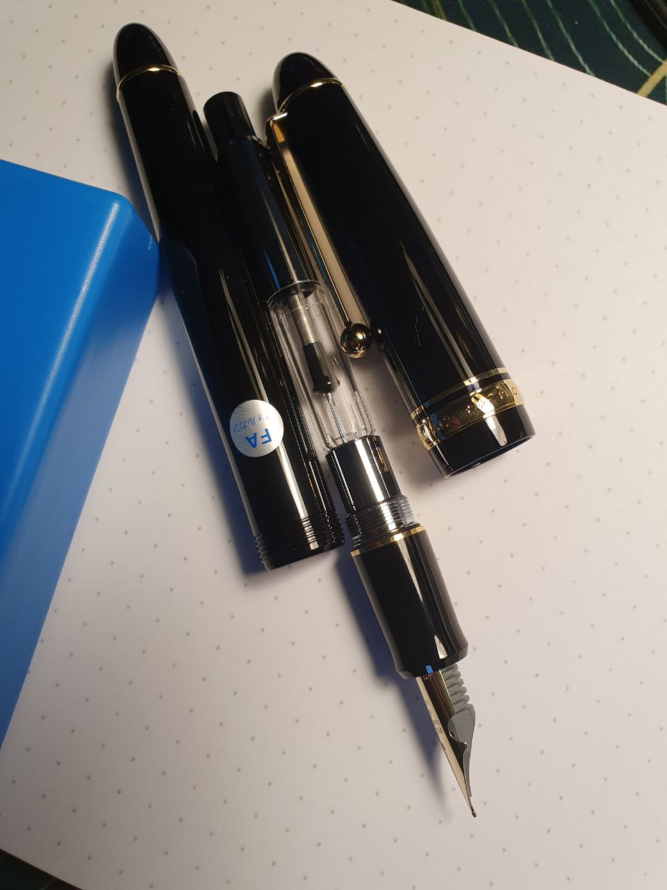 Самая дорогая на этот момент моя ручка. Перо FA (falcon) со специальными вырезами, чрезвычайно мягкое и пружинистое. Начинаю новую тетрадь, попишу недельку. "Потом дополню отзыв" (ц)